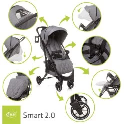 Ook aan veiligheid ontbreekt het bij de 4Baby Smart 2.0 niet. Zo beschikt de wandelwagen over een 5-punts veiligheidsgordel met gordelpads en een (afneembare) valbeugel. De 4Baby Smart 2.0 wordt geleverd inclusief warme beenkap (voetenzak) voor de koude seizoenen. De ruime, verstelbare zonnekap inclusief ventilatievenster beschermt je kleine tegen de felle zon en zorgt voor extra verkoeling in de warme zomermaanden.