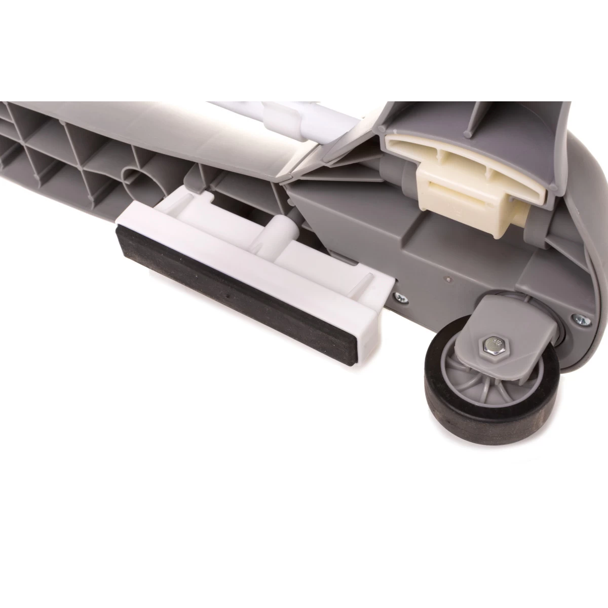 Deze loopstoel kan ook gebruikt worden als loopwagentje. Haal de achterste balk uit het frame en laat je kindje achter de loopstoel lopen terwijl hij/zij zich vast kan houden aan het tafelblad voor stabiliteit. Onder de loopstoel zitten 4 siliconen wieltjes waarvan de voorste twee kunnen zwenken. Deze loopstoel heeft trapstoppers voor extra veiligheid. Zodra je kindje klaar is met spelen kan de loopstoel handig ingeklapt worden, zodat deze compact op te bergen is.