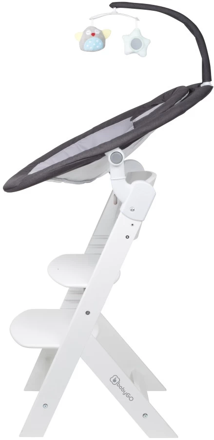 Daarnaast wordt de swing geleverd met een BabyGo Family kinderstoel. De swing is makkelijk op de kinderstoel te bevestigen met de adapters waardoor je je kleine hoger kan zetten om er zo beter bij te kunnen. Van deze kinderstoel is zowel de zitting als de voetensteun in 3 verschillende hoogtes te verstellen zodat er altijd een comfortabele positie voor je kindje te vinden is.