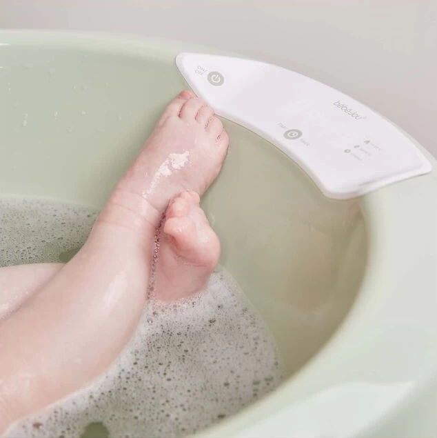 In het badstopje zit een geïntegreerd systeem dat zowel de kamertemperatuur als watertemperatuur kan meten. Deze informatie wordt via een draadloze verbinding op het digitale LED display weergegeven. Tevens is dit display voorzien van een timer die op 10 minuten is in te stellen, zo weet je zeker dat je baby niet te lang in het water ligt.
