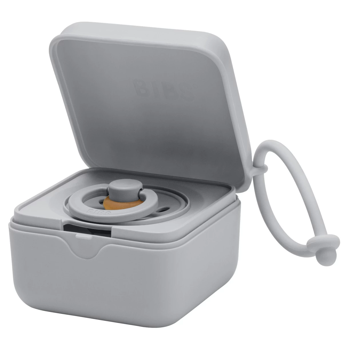 Je draagt het doosje gemakkelijk overal naartoe dankzij de handige siliconen draagband. Het doosje is geschikt voor alle spenen van het merk BIBS.