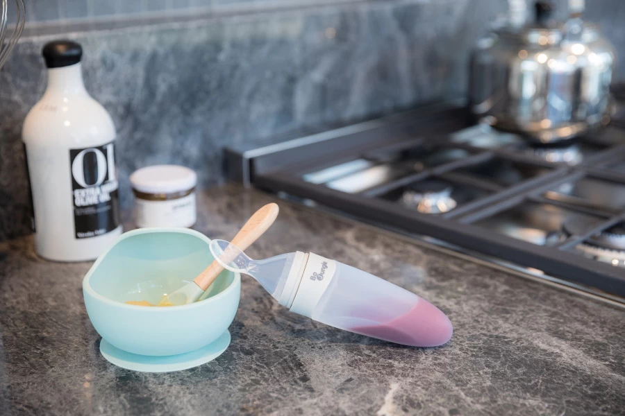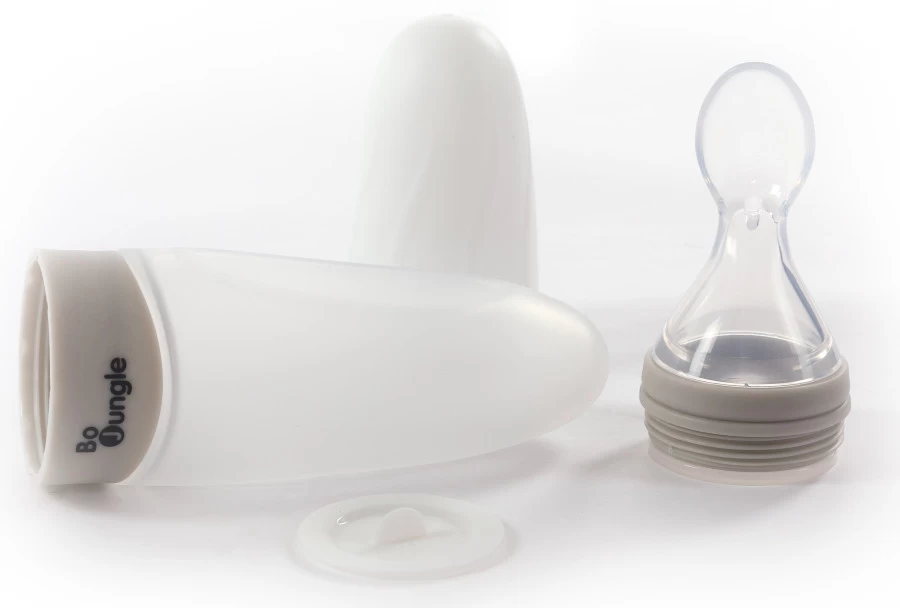 Aan het knijpzakje zit een lepel dus je hebt alles bij de hand als je kleintje toe is aan een tussendoortje. Duw voorzichtig op het opbergvakje om het voedsel naar de lepel te verplaatsen. Dit knijpzakje is ideaal om mee te nemen dankzij de bijgeleverde dop.