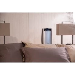 De Bo Jungle B-Sensy is een digitale luchtbevochtiger, die daarnaast ook de lucht zuivert. Dankzij het HEPA-filter filtert de B-Sensy verschillende verontreinigende stoffen uit de lucht. Hij heeft een grote watertank (5 liter) en een roterend spuitstuk. Daarnaast heeft hij een aromaverstuiver die indien gewenst essentiële oliën (niet inbegrepen) kan verstuiven.Â