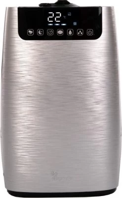 De Bo Jungle B-Sensy is een digitale luchtbevochtiger, die daarnaast ook de lucht zuivert. Dankzij het HEPA-filter filtert de B-Sensy verschillende verontreinigende stoffen uit de lucht. Hij heeft een grote watertank (5 liter) en een roterend spuitstuk. Daarnaast heeft hij een aromaverstuiver die indien gewenst essentiële oliën (niet inbegrepen) kan verstuiven.Â