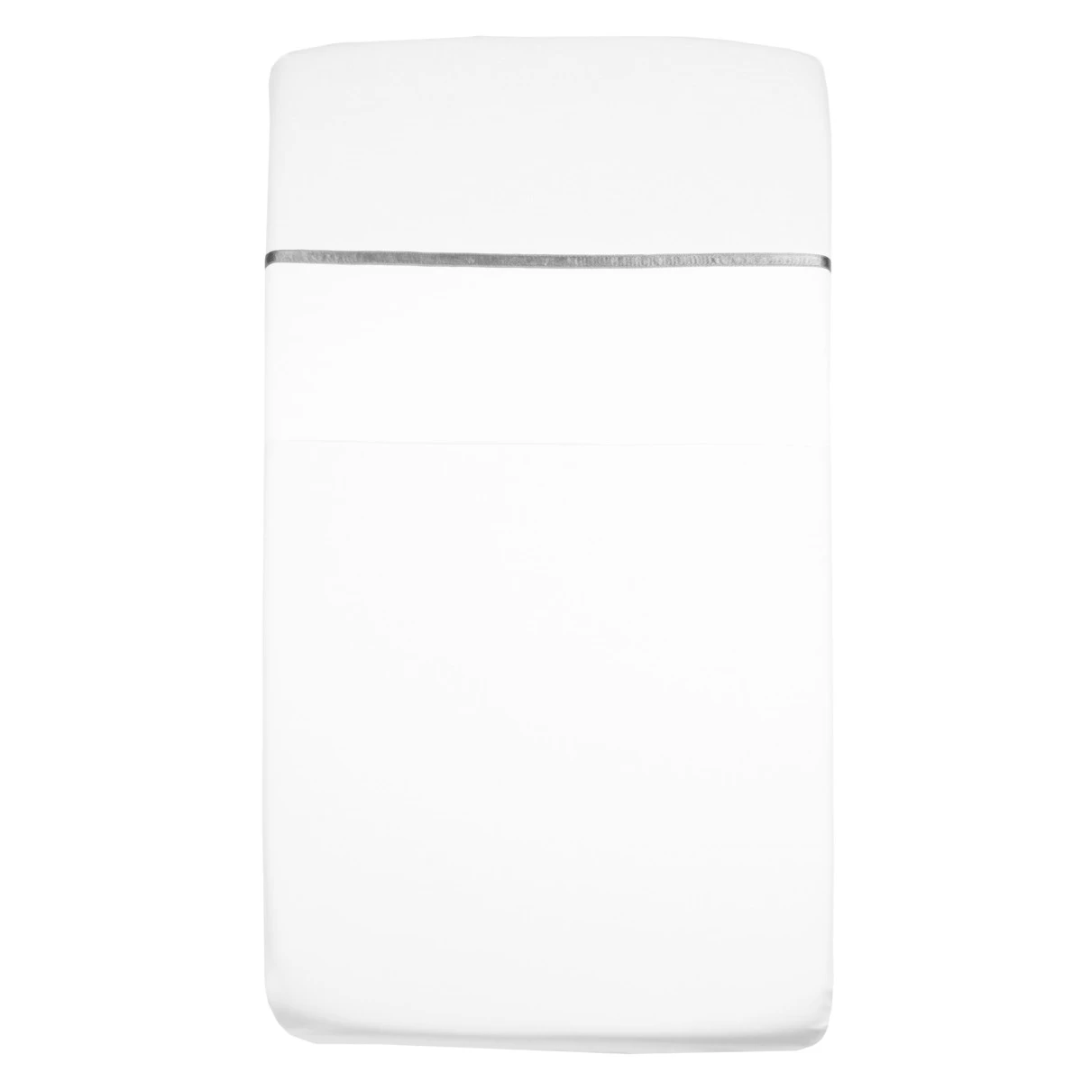 Je kleintje komt helemaal tot rust zodra hij/zij onder dit prachtige ledikantlaken van Briljant ligt. Dit lakentje is volledig wit van kleur met een zilvergrijze bies aan de bovenkant, wat het lakentje leuk afmaakt!