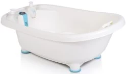 De pootjes zijn voorzien van anti-slip rubbers, zodat het badje altijd stabiel staat. Dankzij de geïntegreerde badthermometer kan je in één oogopslag de exacte temperatuur van het badwater aflezen! Daarnaast heeft het badje twee zeepdispensers voor shampoo en zeep. Zo is het een ideaal badje voor jou en je kindje.