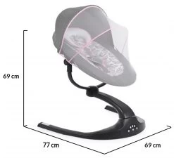 Het stoeltje heeft een zachte bekleding en hoofdkussentje met mooie, stijlvolle print en een 5-punts veiligheidsgordel zodat je kindje altijd comfortabel en veilig zit. De kap met geïntegreerde klamboe beschermt je kindje tegen zonnestralen en insecten, ideaal tijdens de zomermaanden! De swing werkt op batterijen (niet inbegrepen) of werkt met de meegeleverde adapter. Alle functies bedien je eenvoudig met de afstandsbediening of het bedieningspaneel op de schommel zelf.