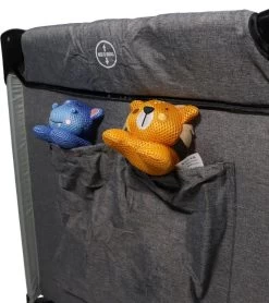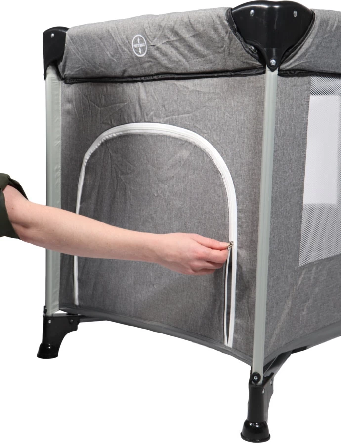Het Ding Stripe campingbed beschikt verder over een kruipluik met ritssluiting. Wanneer je dit luikje opent kan je kind zelf in en uit het campingbedje kruipen! Tot slot heeft het campingbedje een handige opbergzak aan de zijkant en onzichtbare 2 wieltjes aan de onderkant zodat je hem eenvoudig kunt verplaatsen.