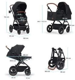 Fijne, uitgebreide 3-in-1 kinderwagen - Afmetingen: