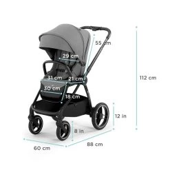 - Kinderwagen (met reiswieg): 88 x 60 x 112 cm (l x b x h)