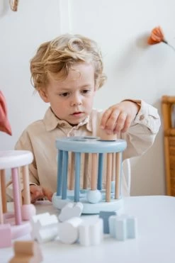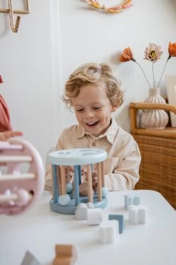 Wat zal je kleintje heerlijk spelen met deze houten vormenstoof van Label Label! De vormenstoof heeft verschillende openingen waar de 6 vormpjes in geduwd moeten worden. De vormpjes hebben ook een leuk figuurtje. Daarnaast is de vormenstoof rond en kan hij over de grond rollen! Extra leuk en uitdagend wanneer je kindje net kan kruipen.Â