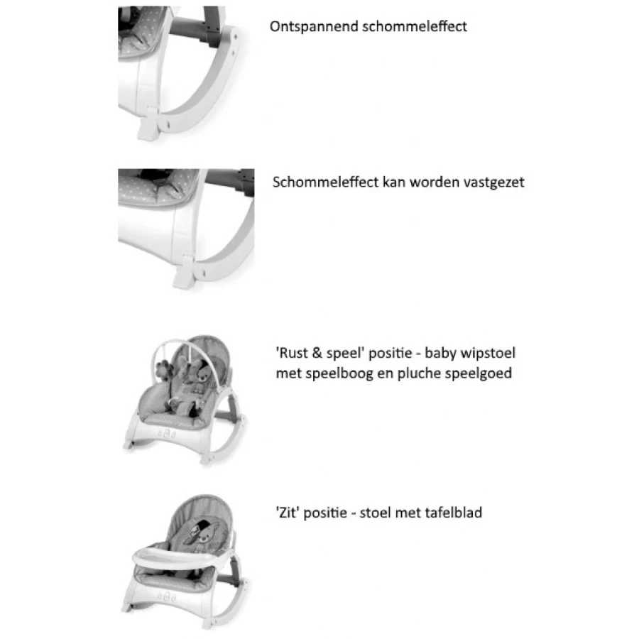- Als wipstoel te gebruiken voor kleintjes vanaf 0+ maanden van max. 9 kg