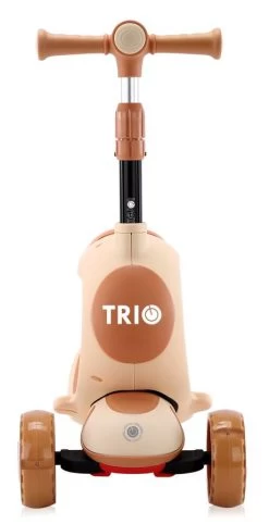 Wordt je kleine wat groter? Dan kun je het zitje gemakkelijk verwijderen. Zo bouw je de Trio Scooter om tot step! Het stuurtje is in hoogte verstelbaar (72 – 77 – 83 cm) en heeft anti-slip handvaten. Op het achterwiel zit een rem, die je kindje makkelijk kan bedienen.