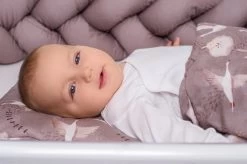 Het kussentje is gemaakt van 100% bamboe katoen. Bamboe katoen ventileert goed. De stof is hypoallergeen, wat betekent dat zelfs de meest gevoelige kindjes goed tegen deze stof kunnen. Daarnaast is de bamboe stof antibacterieel en gaat het schimmel tegen.