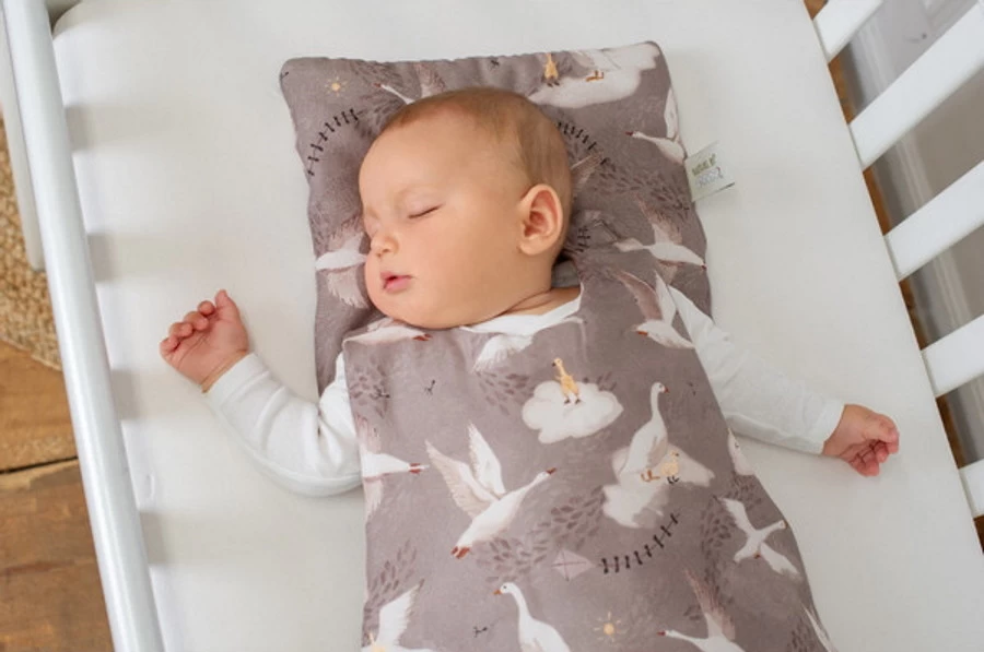 Je kan dit kussentje in een wiegje of ledikant gebruiken, maar het is ook geschikt voor in een autostoel, kinderwagen of lekker op de grond. Het kussentje is 25 x 30 cm groot.Â
