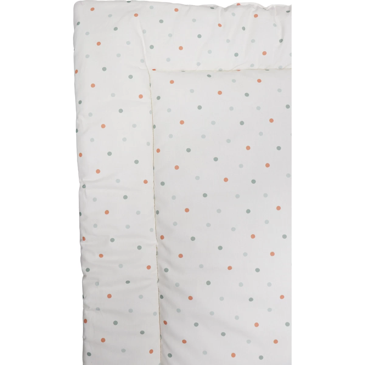 Fleur je box op met dit mooie boxkleed uit de stippen collectie van MamaLoes! Dit boxkleed heeft een mooie allover print met stippen. Wil je een wat rustiger zicht? Draai het kleed dan om voor een effen beige kleur. Handig!