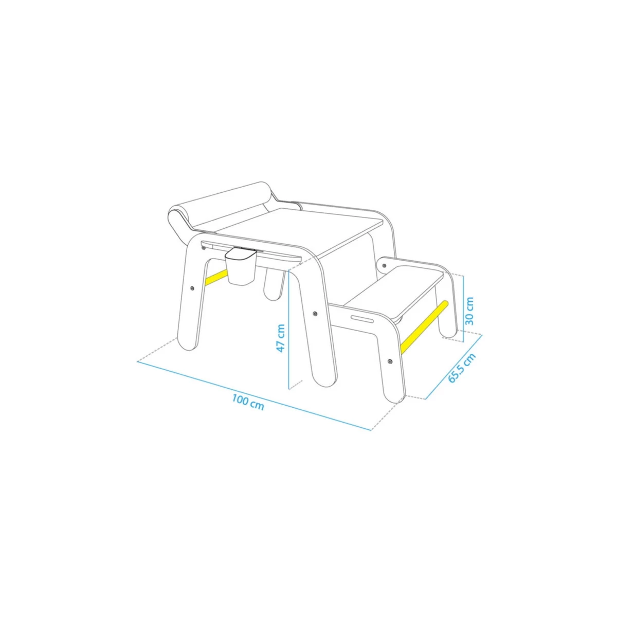 Afmetingen: 65 x 100 x 59 cm | Zithoogte: 30 cm |Tafelhoogte: 47 cm - Gewicht: