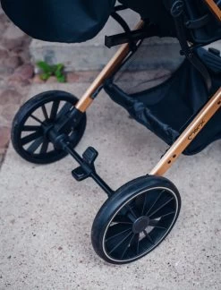 De Estelle Dakar Wandelwagen heeft een met de voet bedienbare rem en grote banden van hoge kwaliteit PU rubber. Door de shockdemping op alle vier de wielen rijd je comfortabel over elk terrein. Hij is geschikt voor kindjes vanaf 6 maanden tot een max. gewicht van 22 kg. Wanneer je de wagen even niet nodig hebt, kun je hem gemakkelijk inklappen. Dankzij het uitschuifbare handvat kun je hem als een soort trolley achter je aan trekken!
