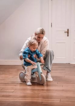 De loopfiets heeft zachte wielen die je vloer niet beschadigen, dit maakt hem geschikt om zowel binnen als buiten te gebruiken! Het fietsje heeft twee achterwielen en anti-slip handvaten wat hem veiliger maakt. Hij is geschikt voor kindjes vanaf 12 maanden (max. draaggewicht 25 kg) en is met zijn zachte kleuren ook nog eens stijlvol!