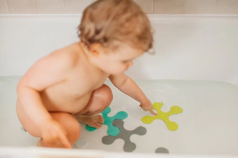De badmatjes kunnen als een puzzel in elkaar gezet worden, zodat je kleintje er ook nog lekker wat badderplezier aan beleeft. De badmatjes zijn anti-bacterieel en eenvoudig te reinigen.