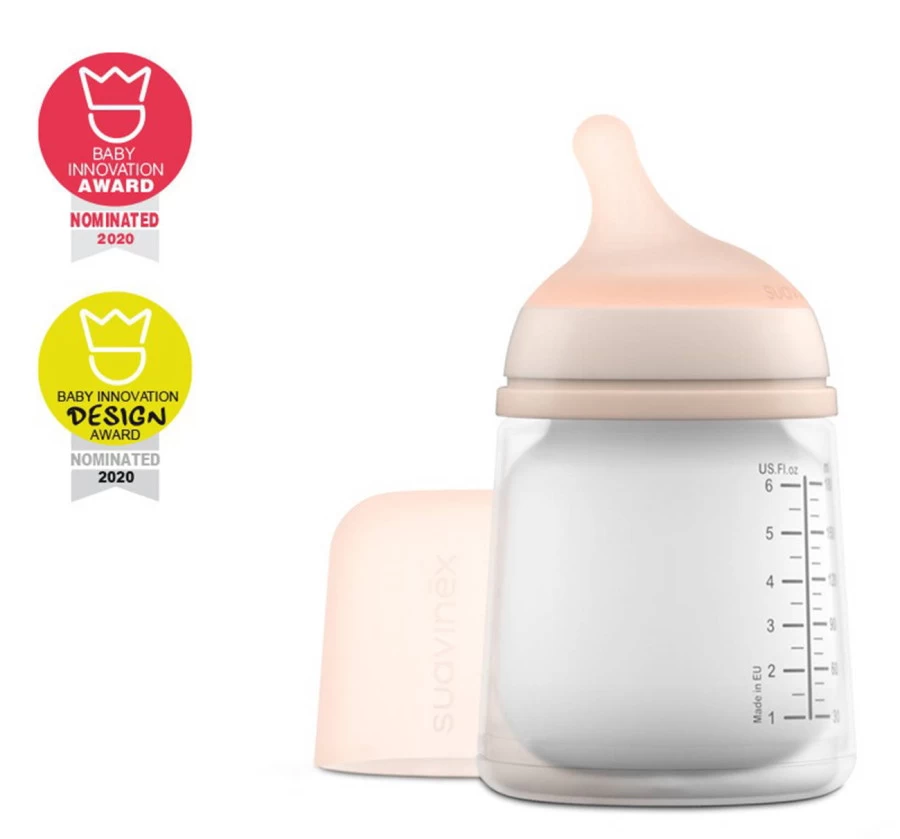 De ultradunne Slow Flow silicone speen uit de Zerø.Zerø™ collectie van Suavinex is gemaakt om de vorm, flexibiliteit en het gevoel van een echte tepel na te bootsen. Dankzij de natuurlijke gebogen vorm kan je kindje makkelijker een goede houding aannemen tijdens het drinken. De speen voorkomt dat je kindje lucht inslikt dankzij de vorm, en doordat de speen altijd gevuld blijft met vloeistof. De fles bevat een anti-koliek zakje dat samentrekt op het ritme van je kindje tijdens het drinken, dit systeem helpt tegen luchtbellen en voorkomt eventuele krampjes.