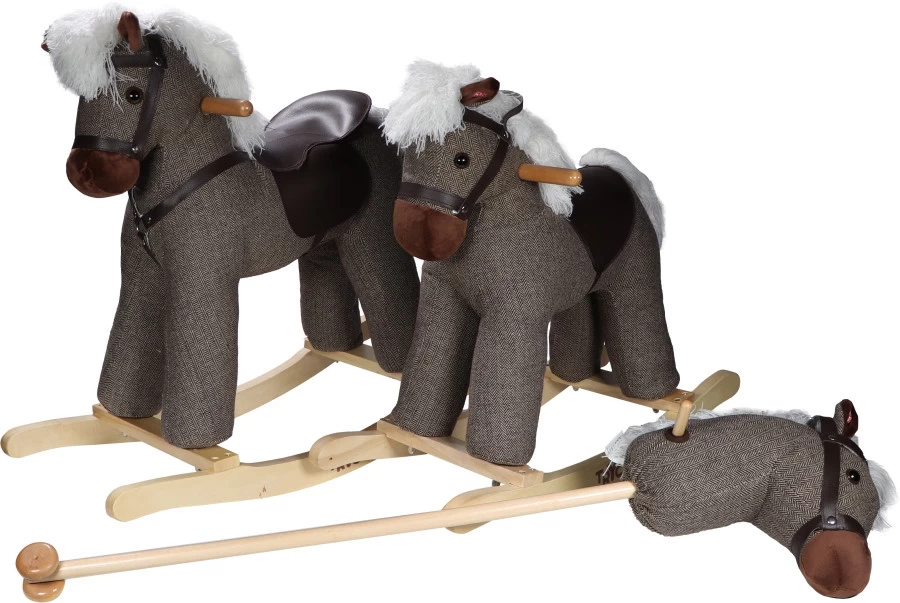 Het hobbelpaardje is gemaakt van een mooie ruiten stof met mooie afwerking, heeft een halster én een zadeltje om op te zitten. De mooie manen en het staartje maken het paardje levensecht. Ook maakt het paardje echte galoppeer geluiden en kun je andere cowboy geluiden aanzetten waardoor je kleintje zal denken dat hij of zij op een echt paardje rondrijdt!
