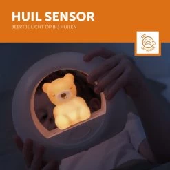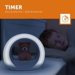 De geluidssensor zorgt ervoor dat wanneer je kleintje ’s nachts huilt, het beertje automatisch even aangaat zodat je kindje kan zien dat er niets aan de hand is en hij/zij nog steeds veilig thuis is. Als de rust weer terug is schakelt Billy zichzelf weer uit. Met de timer functie kun je instellen dat de ring rondom Billy na 30 minuten uitgaat en Billy zelf na 60 minuten. Ook de felheid is aan te passen zodat je hem tijdens het naar bed gaan lekker fel kunt zetten. Gaat je kleine slapen? Dan kan je het lichtje gemakkelijk dimmen.